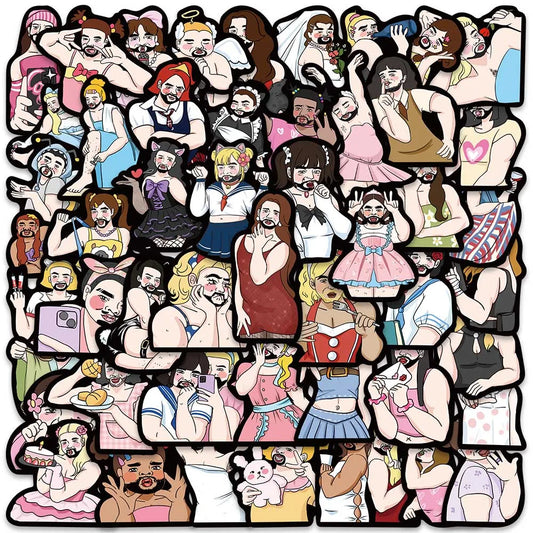 50pcs Funny Bearded Girls Meme Stickers for Luggage, Laptop, Bike, Skateboard - Waterproof Toy Graffiti