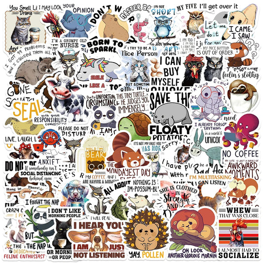 50PCS Funny Animal Meme Stickers Vinyl for Fridge, Skateboard, Laptop, Helmet, Car Gift