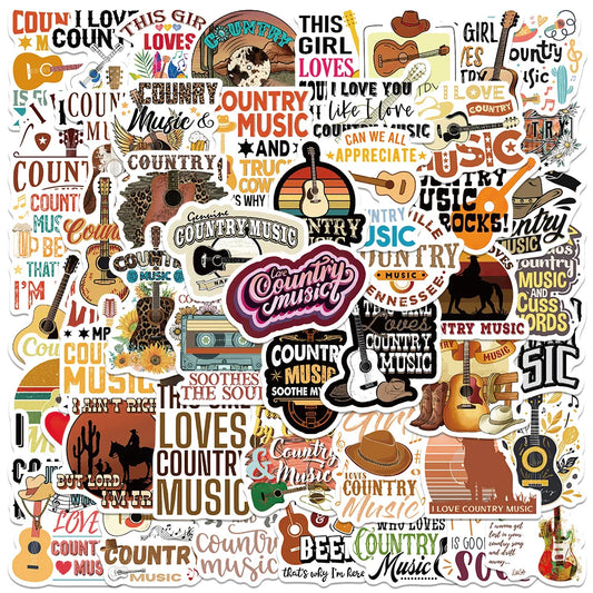 50pcs Vintage Country Music Stickers for DIY Journal, Luggage, Car, Helmet, Fridge Decoration