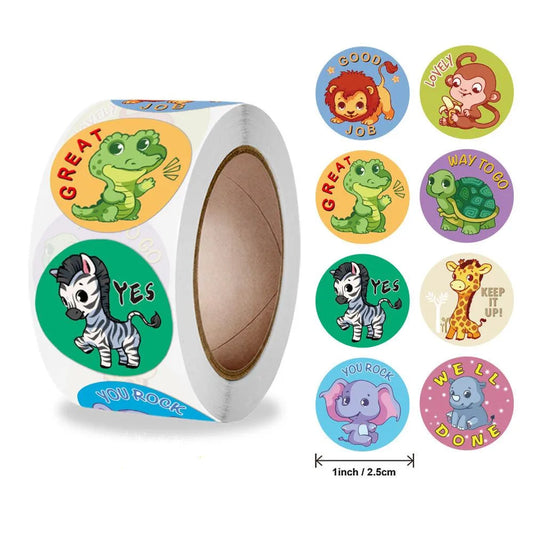 500 Stickers/roll Teacher Rewards And Encourages Children’s Toys Cute Cartoon Animal Stickers Seal Stickers