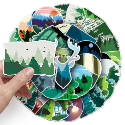 50Pcs Cartoon Trees Plants Forest Stickers for Phone Laptop Stationery Scrapbooking Material Children Sticker Craft Supplies