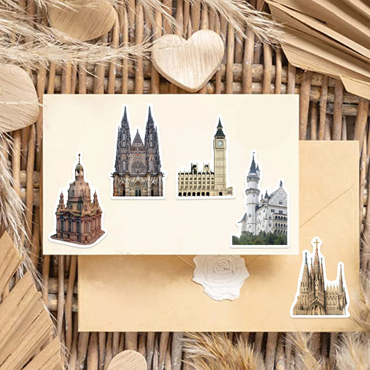 50Pcs Vintage Medieval Castle Stickers Phone Case Skateboard Motorcycle Sticker Retro European Style Architecture Decals