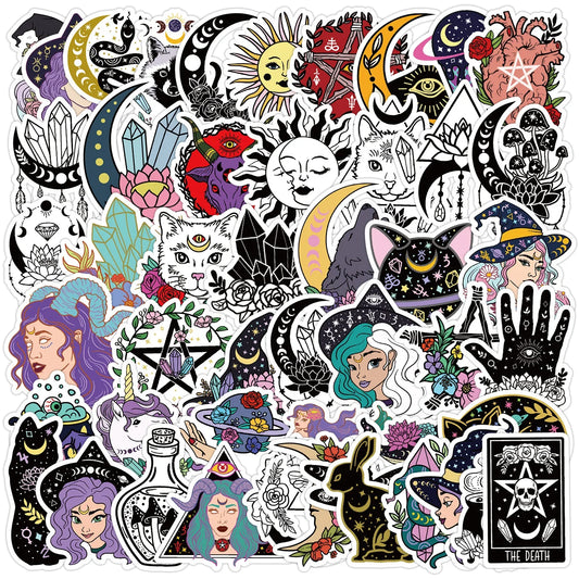 50PCS Gothic Tarot Witch Stickers for Fridge, Guitar, Phone, Bottle, Kids
