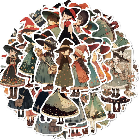 Cartoon Witch Stickers for Phone Laptop Luggage Skateboard - 10/30/50PCS