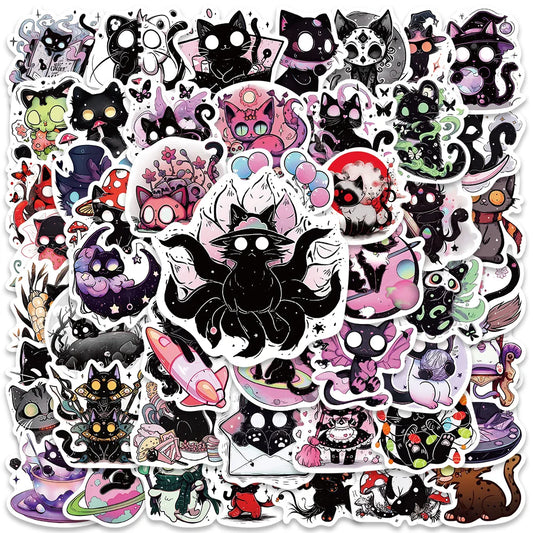 50PCS Kawaii Witch Cat Stickers for Laptop, Fridge, Suitcase, Bottle, Phone