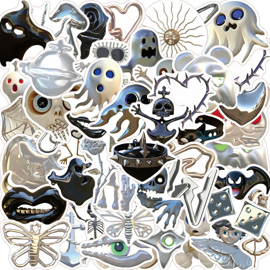 50PCS 3D Horror Ghost Skeleton Silver Cartoon Stickers Waterproof Decals for Bike, Refrigerator, Bottle, Kid Toy
