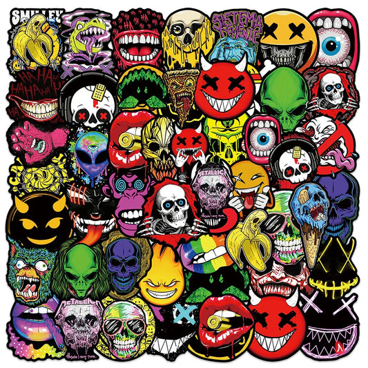 50Pcs Horror Skull Stickers for Luggage, Laptop, Helmet, Motorcycle, Graffiti