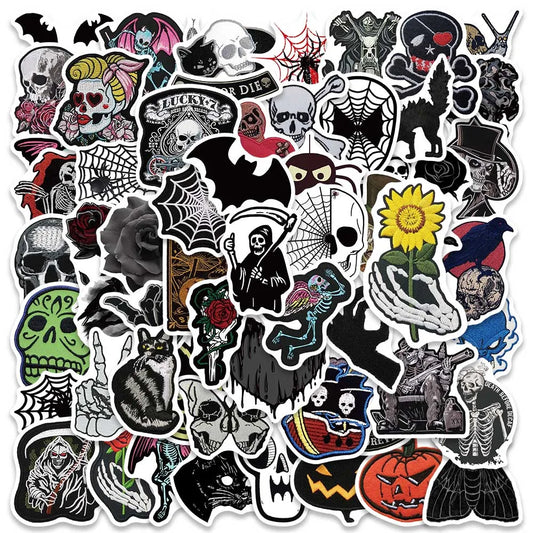 50PCS Gothic Halloween Skull Stickers for Laptop, Luggage, Skateboard, DIY Decals