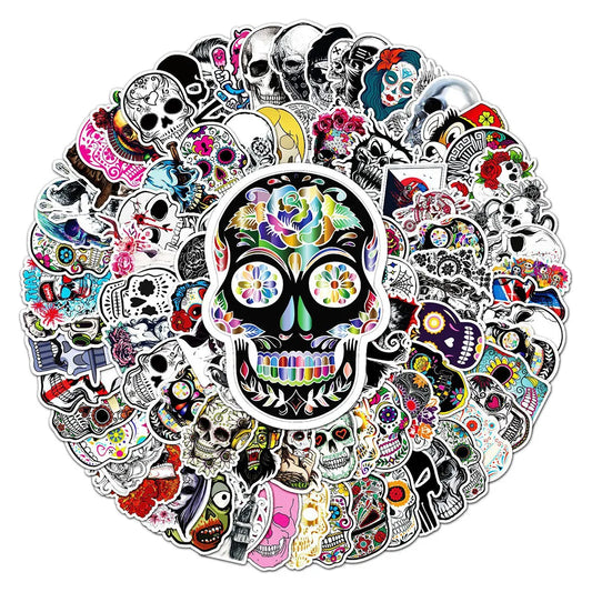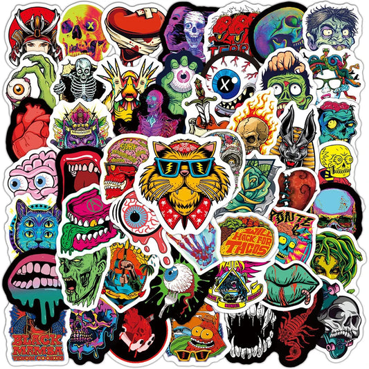 50Pcs Cool Horror Skull Stickers Waterproof for Phone Skateboard Guitar Laptop Car Motorcycle Helmet Decals Graffiti Toys