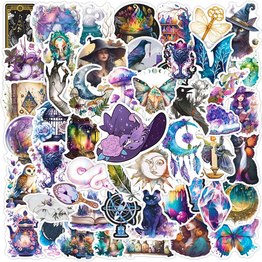 10/30/50/100PCS Bohemian Apothecary Lucky Crystal Witch Art Sticker Packs