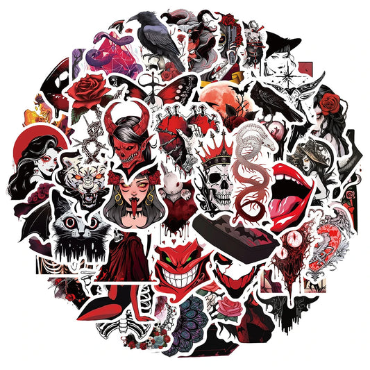 10/30/50PCS Cool Black Red Gothic Skull Horror Stickers Graffiti Toys DIY Fridge Laptop Phone Notebook Luggage Car Sticker Gift