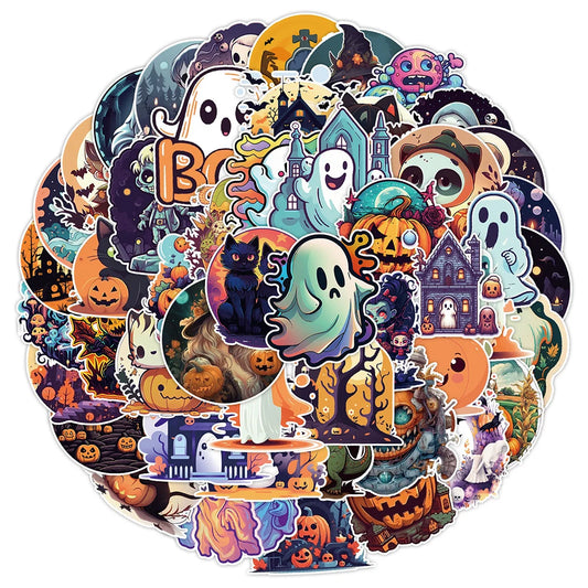 10/30/50/100/200pcs Cool Cartoon Halloween Witch, Pumpkin, Ghosts, and more Sticker Packs