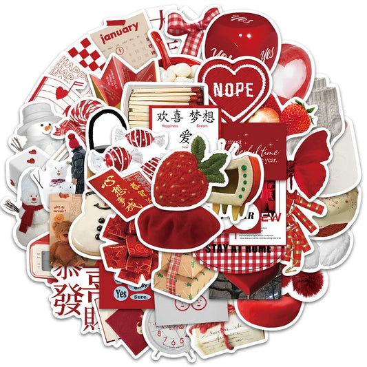 Red Stickers Decoration Pack: Phone, Notebook, Luggage, Laptop, Bike, Wall Decals, Kids Toys