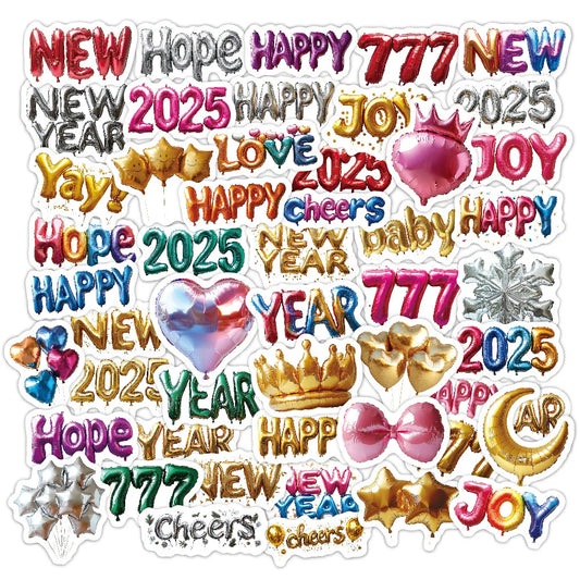 New Year Party Decoration Stickers - 10/30/50pcs Balloon Decals for Notebook, Luggage, Laptop, Phone, Fridge, Wall
