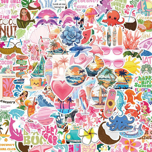 50PCS Waterproof Summer Coconut Stickers for Laptop, Phone, Diary, Planner