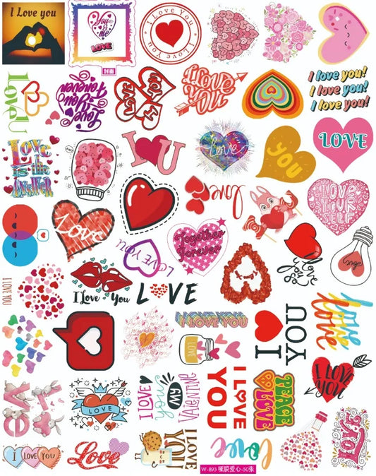 50pcs Valentine's Day Love Cartoon Stickers Waterproof Decorative for Luggage Phone Car Kids
