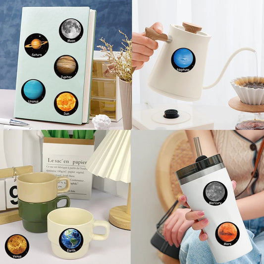 500pcs/roll Cute Cartoon Out Space Planets Stickers Kids Students Reward Decals Luggage Laptop Guitar Vinyl Decals (10 Patterns)