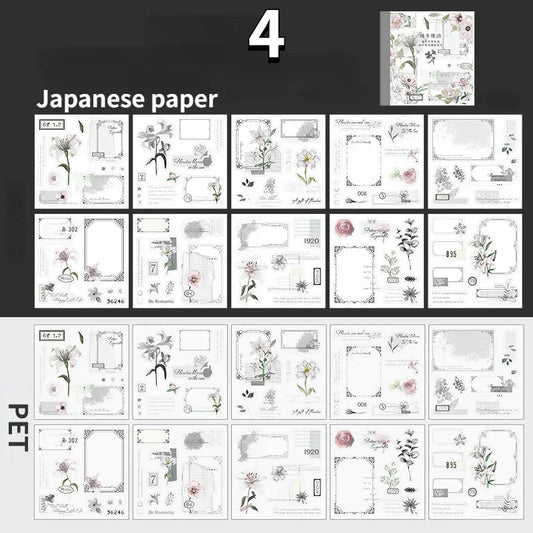 Retro Floral Sticker Book - Four Seasons Theme, 20pcs