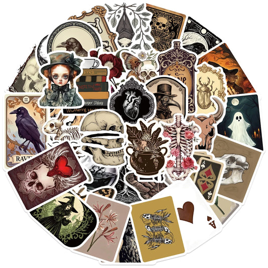 50PCS Gothic Skeleton Animal Stickers for Skateboard, Guitar, Computer, Refrigerator, Desk