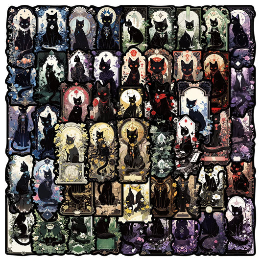 10/50PCS Gothic Dark Black Cat Flower Stickers Aesthetic Graffiti Goth Decal Toy DIY Scrapbook Bottle Phone Luggage Cool Sticker