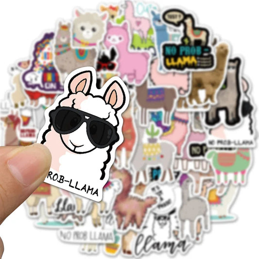 50PCS Cute Llama Alpaca Animal Stickers for Kids Skateboard Bike Waterproof