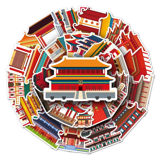 10/50pcs Antique Building House Stickers Personalized Chinese Style Stickers DIY Mobile Phone Case Suitcase Stickers Waterproof