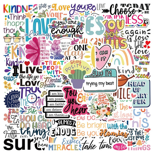 52pcs Inspirational Quote Stickers Pack Positive Decals for Water Bottle Laptop Phone Skateboard Helmet Gifts for Teens Kids