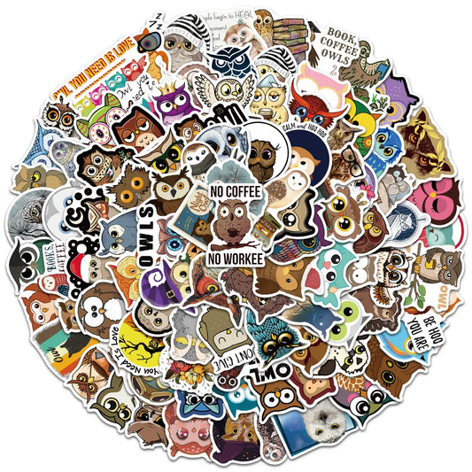 50/100pcs Cute Cartoon Animals Owl Stickers Kids Toy Waterproof Graffiti For Laptop Water Bottle Phone Bicycle Car Decals