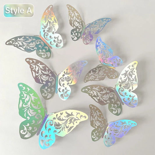 60pcs/Pack 3D Colorful Silver Butterflies DIY Wedding Festival Party Balloon Decoration Wall Hollow Butterfly Sticker
