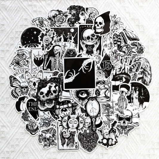 Gothic Stickers, 50 Pcs skull Vinyl Sticker Pack, Waterproof Skeleton Stickers for Laptops, Water Bottles, Phone Case