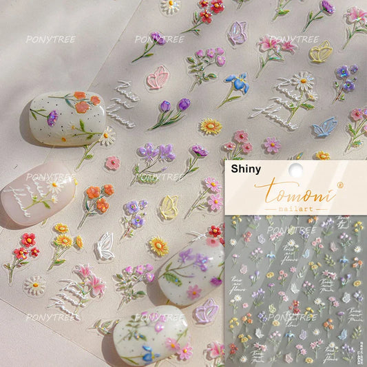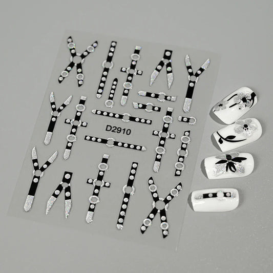 5D Floral Nail Stickers: Glitter Silver Black Blossoms