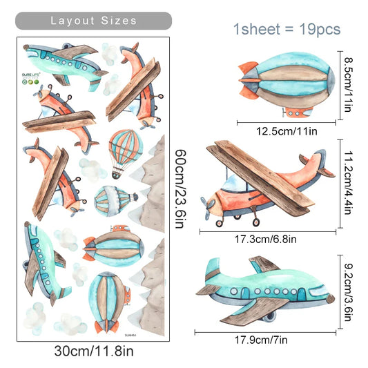 Cartoon Planes Hot Air Balloons Clouds Wall Stickers Nursery Decor