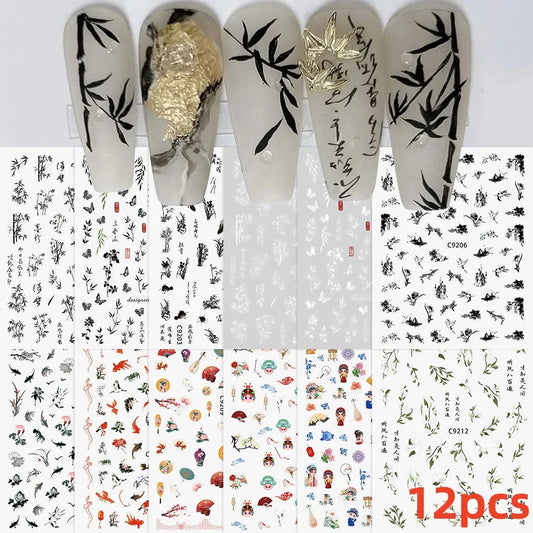 3D Gradient Nail Stickers 12-Color Self-Adhesive Wraps