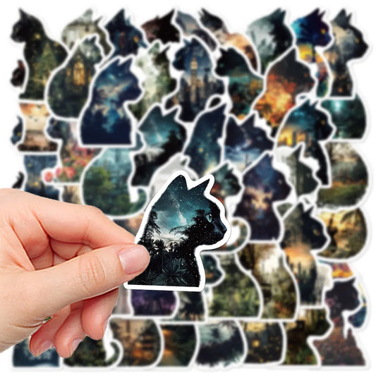 10/50PCS Personalized Cat Landscape Print Stickers Aesthetic Water Bottle Suitcase Guitar Kids Toy Scrapbook PVC Decals Sticker