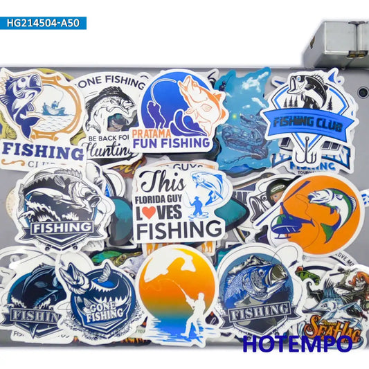 50pcs Fisherman Fish Outdoor Go Fishing Funny Phone Laptop Skateboard Car Stickers Pack for Fridge Glass Box Tank Bucket Sticker