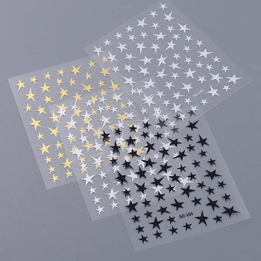 4PCS Y2K Star Nail Art Stickers White Black Gold Pentagram Decals Manicure Supplies
