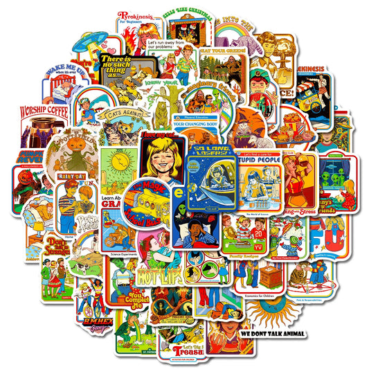 70’s horror vibe 50PCS Mixed Cartoon Humor Retro Ghost Graffiti Anime Old Time Stickers Luggage Diy Skateboard Laptop