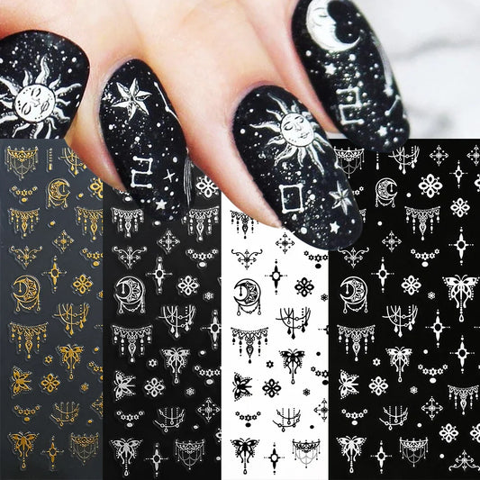 Alphabet Nail Stickers: Gold, Silver, Black, White (4pcs)