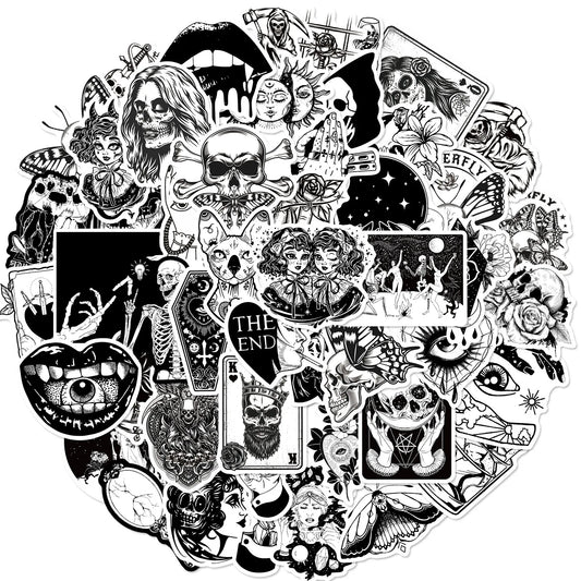 50pcs Gothic Skull Stickers for Teens, Cool Punk Horror Stickers for Laptop and Luggage