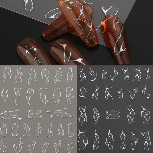 3D Metallic Silver Nail Stickers Thorns Vine Curve Stripes Tape Swirl Decals