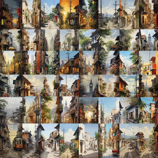 50pcs Retro City Street Stickers for Guitar, Bike, Laptop