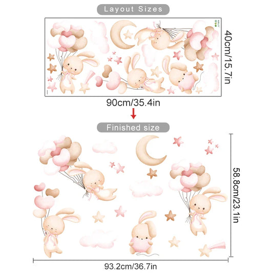 Pink Bunny Moon Clouds Stars Nursery Wall Decals Stickers Kids Room Decor