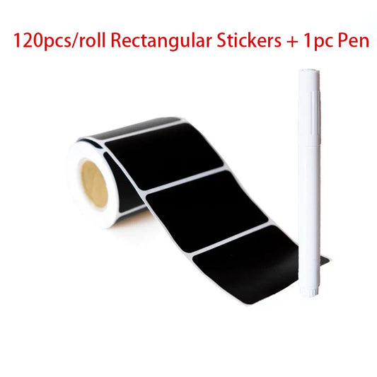 Black Waterproof Reusable Label Stickers With White Chalk For Mason Jars, Craft Room, Storage Spaces, Glass Bottles,Organization