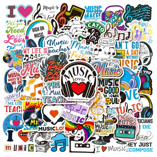50 Music Stickers: Skateboard, Laptop, Phone Decals
