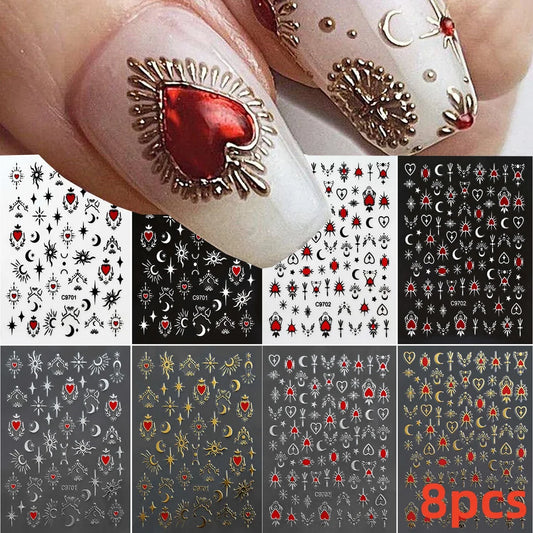 5D Star Moon Nail Stickers Pink Retro Bronzing Nail Art Decals DIY Adhesive Accessories