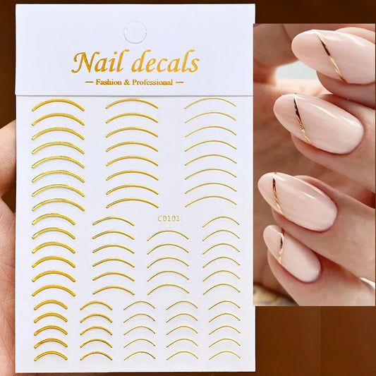 Glitter French Line Nail Stickers Gold White Stripes Decals