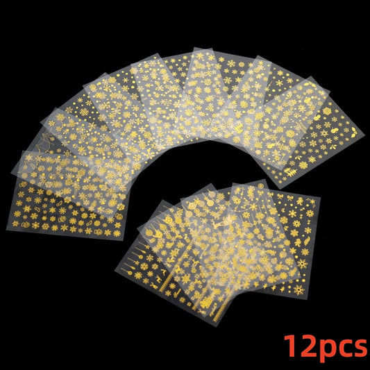 12pcs 3D Christmas Nail Stickers: Elk, Snowflake, Holly