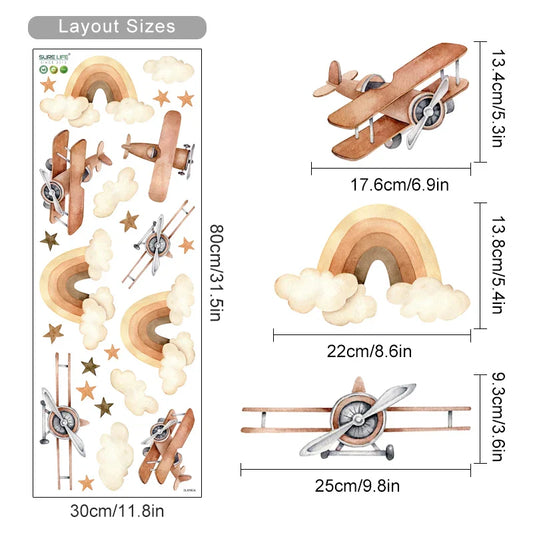 Boho Cute Airplane Rainbow Star Nursery Wall Decals Kids Room Decor