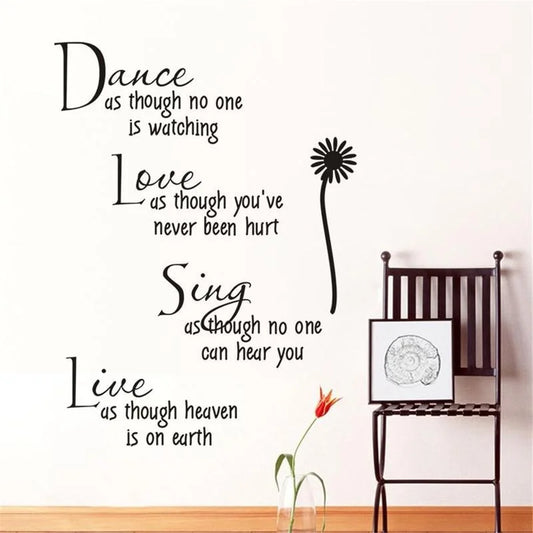 Dance Love Sing Live Quotes Wall Decals Pvc Wall Stickers Home Decor Bedroom Diy Wall Art Flower Poster Mural