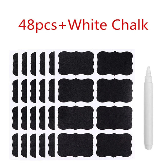 48pcs Blackboard Stickers Waterproof Chalkboard Kitchen Spice Label Sticker Home Jars Bottles Tags Labels White Marker